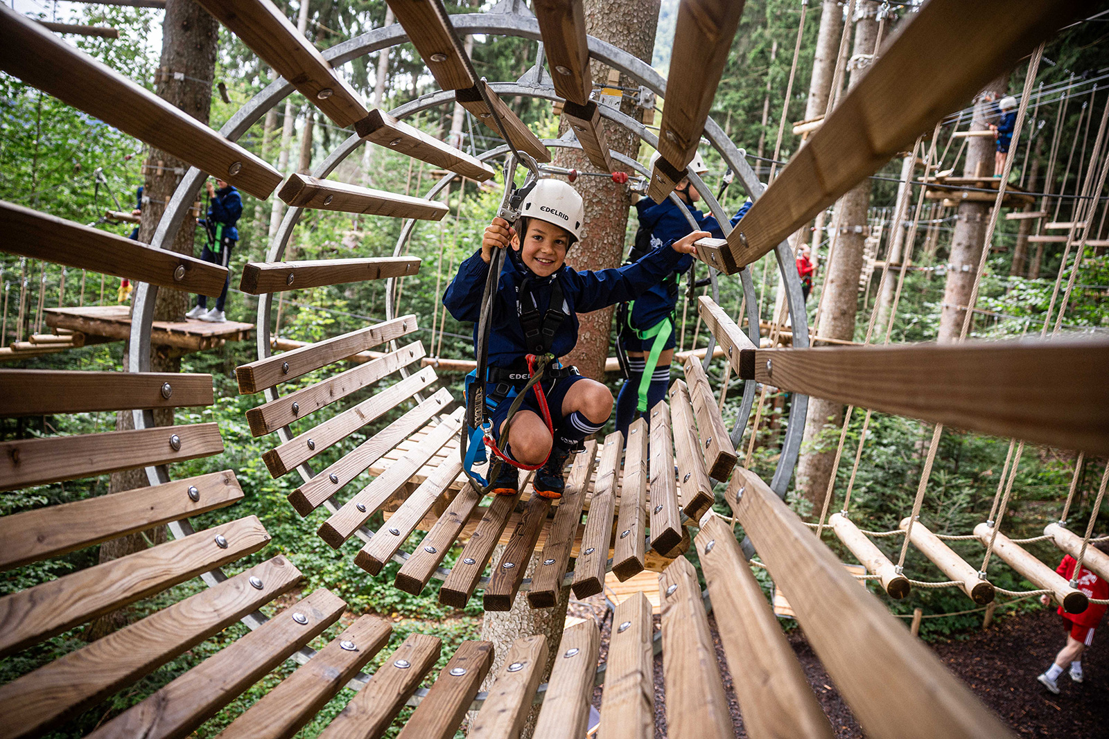 Doch damit nicht genug: Auch andere Sportarten konnten ausprobiert werden – darunter Blackroll-Training mit Snowboard-Profi Ramona Hofmeister, ein Fitness-Parcours mit Leichtathlet Aleksandar Askovic oder Basketball mit Baskteballer Jannick Jebens. Besonders beliebt war zudem die Teamwork-Station, die die Kids enger zusammenschweißte, sowie der Skillcourt, der nicht nur schnelle Reaktionen, sondern auch volle Konzentration forderte. Ein weiteres Highlight: das Klettern im nahegelegenen Hochseilgarten mit Extremsportlerin Anja Blacha, ergänzt durch inspirierende Vorträge, die Mut machten und Perspektiven eröffneten.